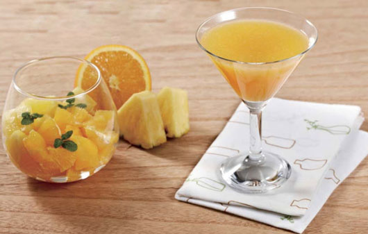 Thành phần: Cam 170g, Dứa 120g, cây bạc hà 1g.